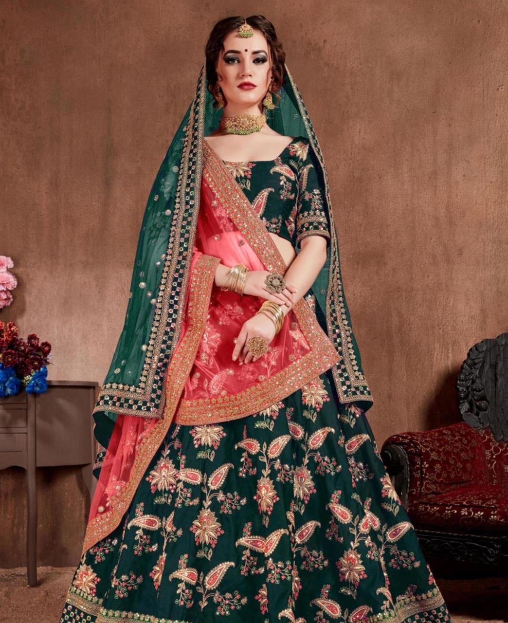 Dupatta Color: 1: Pine Green & 2: Crimson Red.