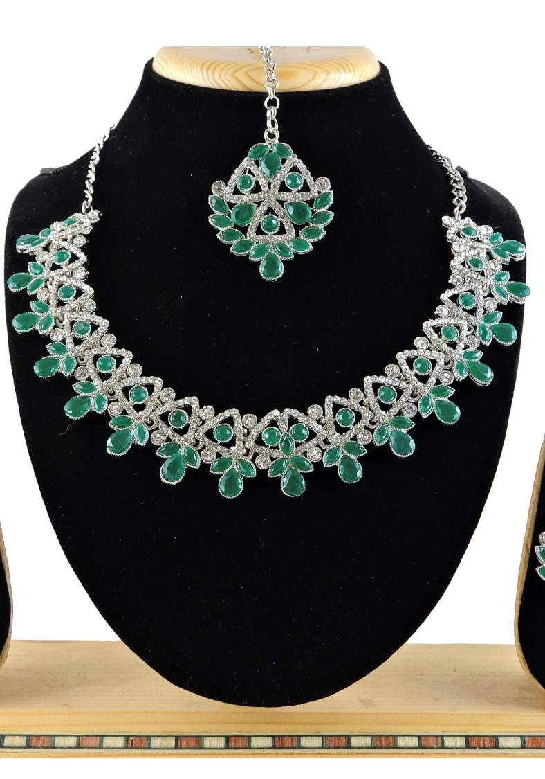 Buy Statuesque Sea Green Necklace Set online.