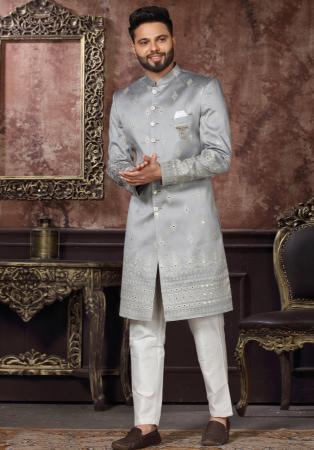 Buy Statuesque Silk Light Slate Grey Indo Western online.