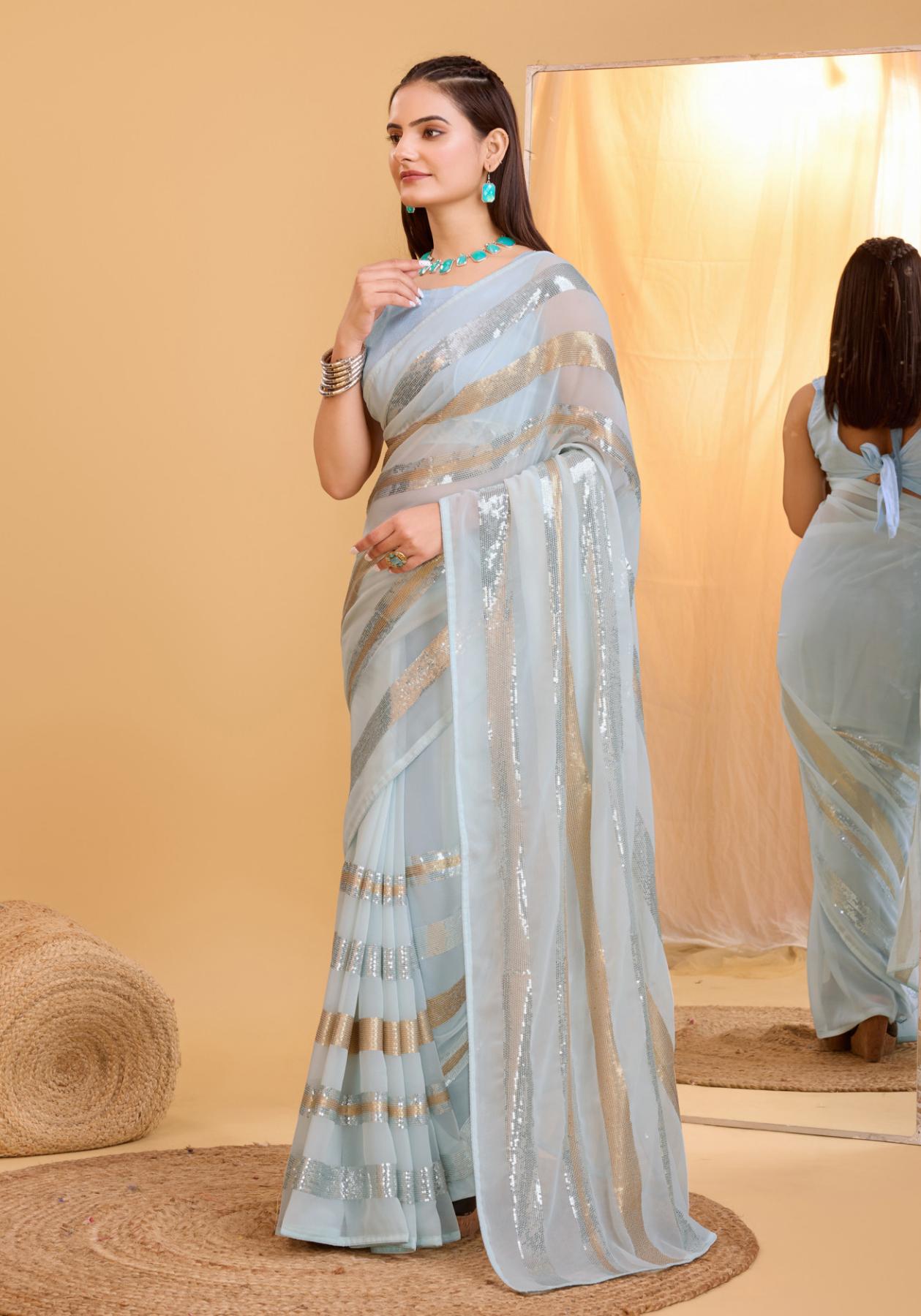 Buy Stunning Georgette Light Steel Blue Saree online.
