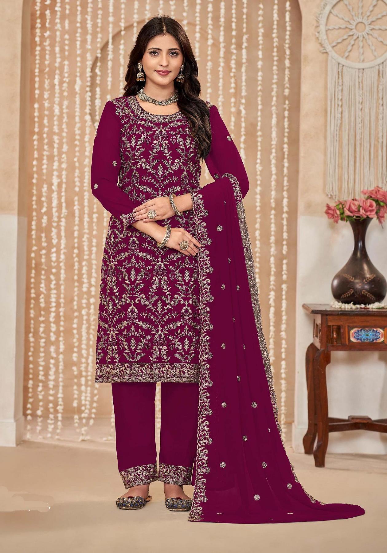 Buy Stunning Georgette Pink Straight Cut Salwar Kameez online.