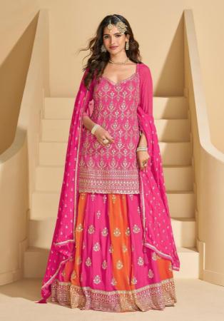 Buy Stunning Georgette Pink Straight Cut Salwar Kameez online.