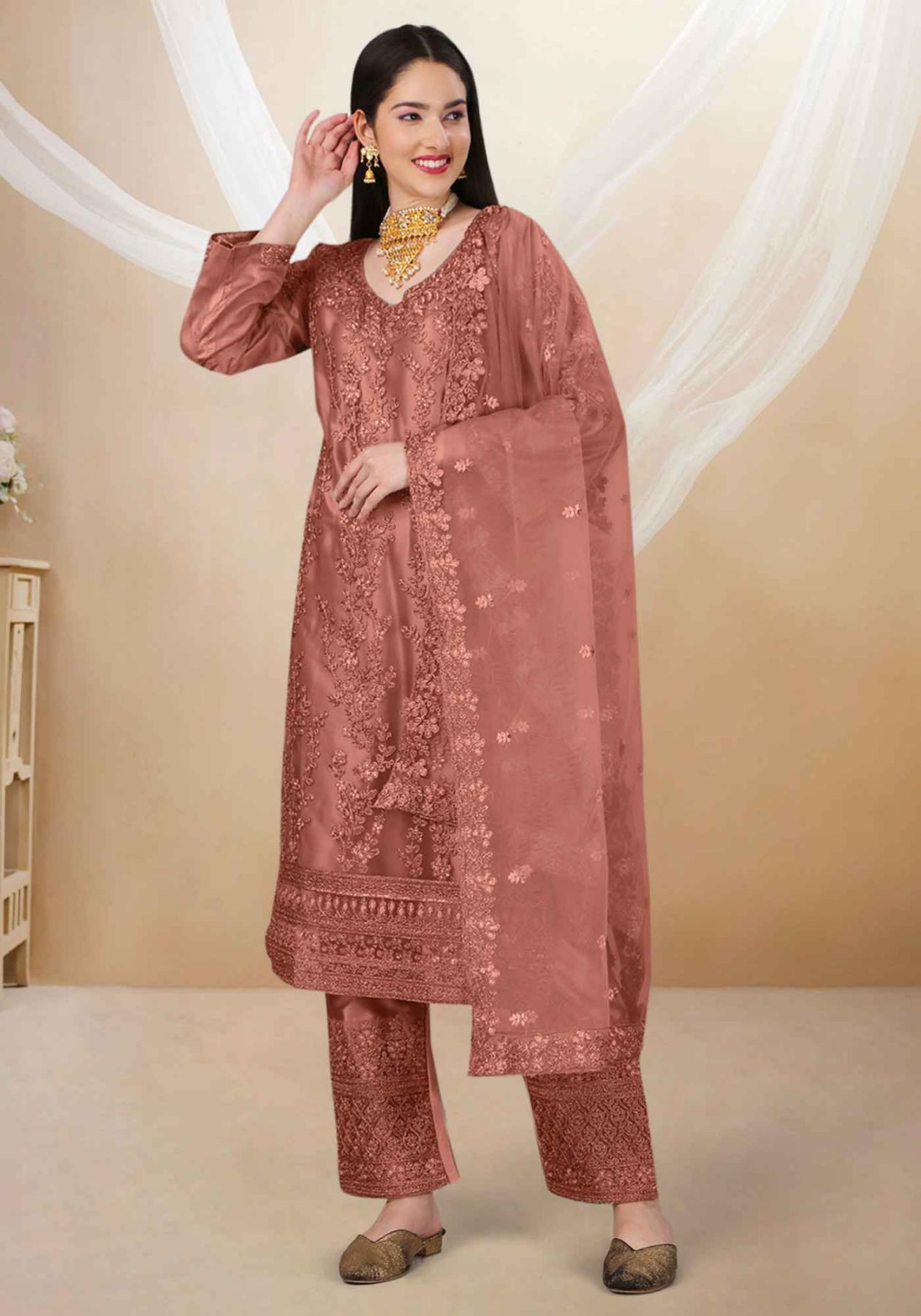 Stunning Net Indian Red Straight Cut Salwar Kameez