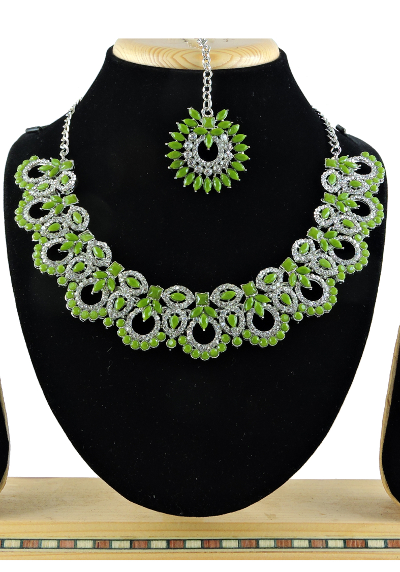 Details: 1 Necklace Set, 2 Earrings, 1 Mang Tikka.