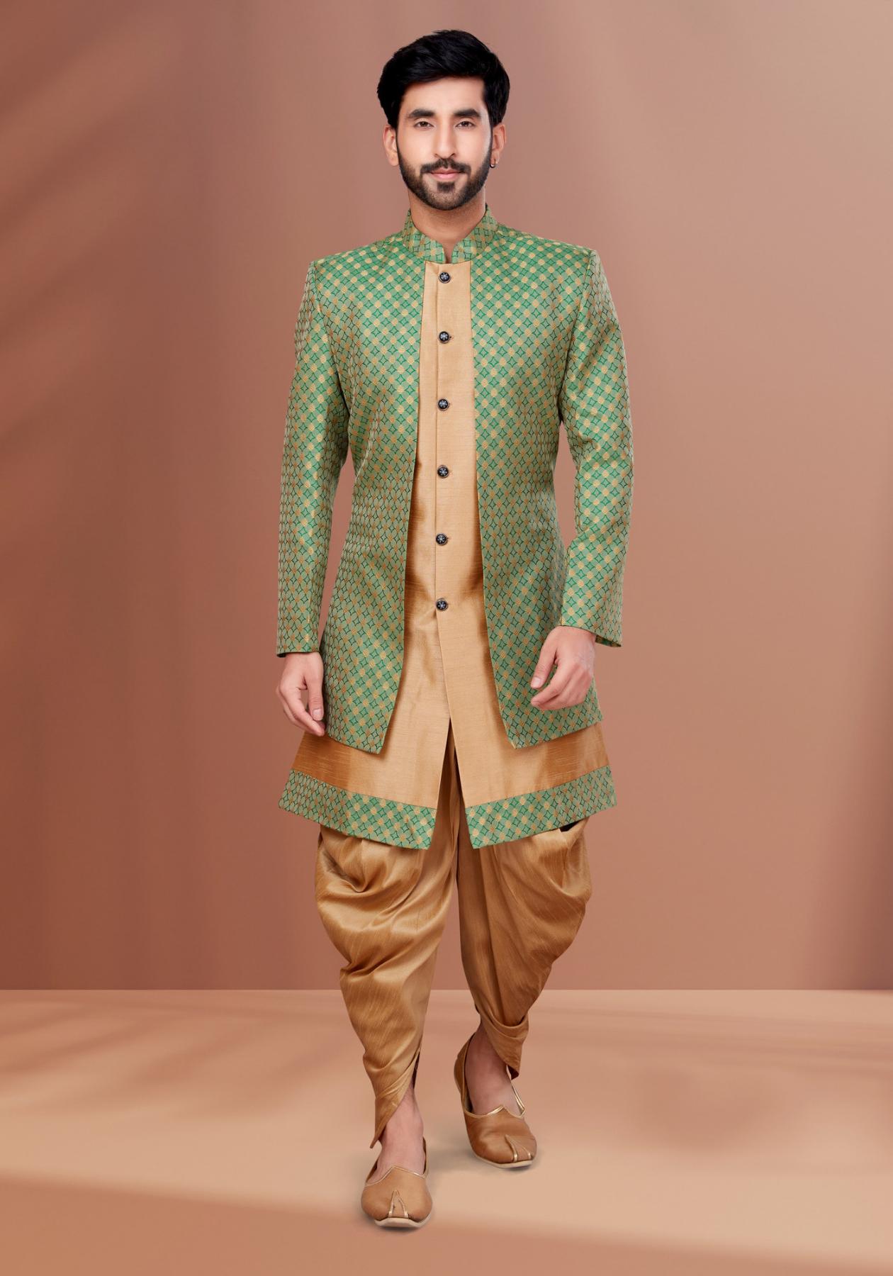 Buy Stunning Satin & Silk Tan & Dark Khaki Indo Western online.