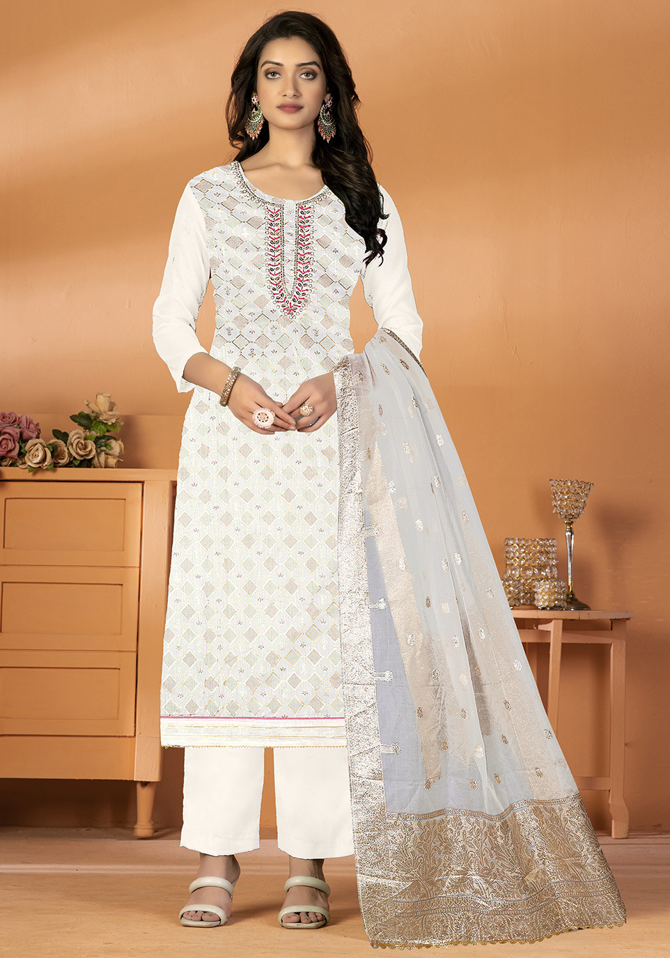 Normally size is measured between the underarm stitching lines from the stressed kameez.