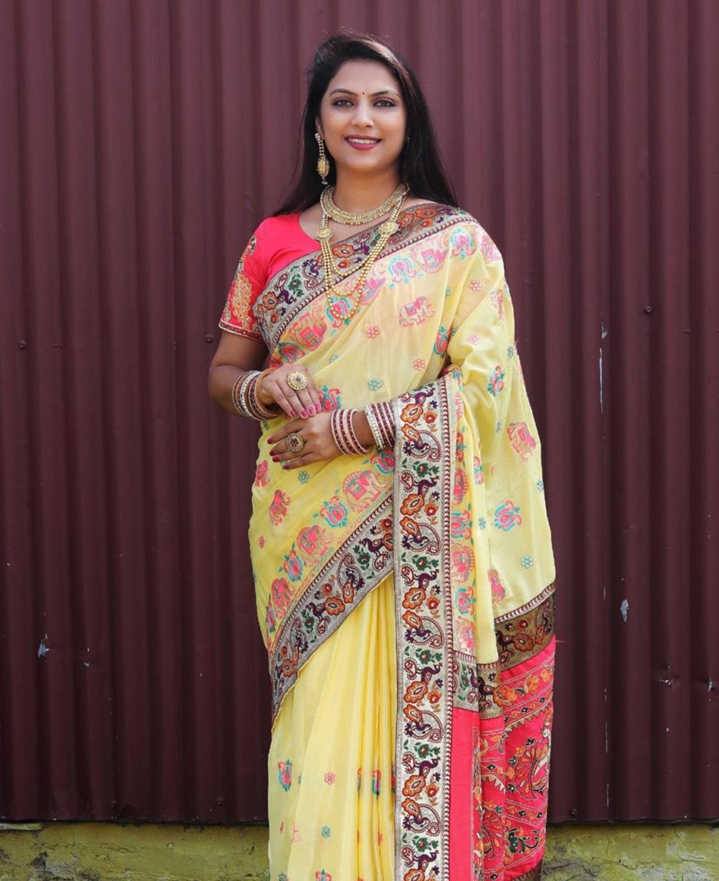 Stunning Yellow Silk Saree