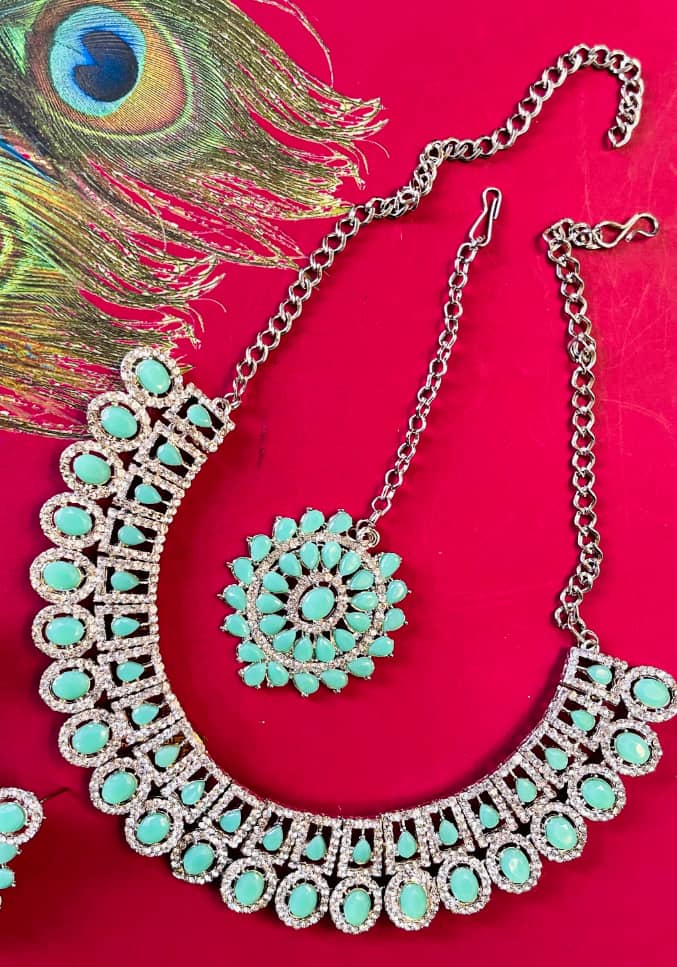 Details: 1 Necklace Set, 2 Earrings, 1 Mang Tikka.