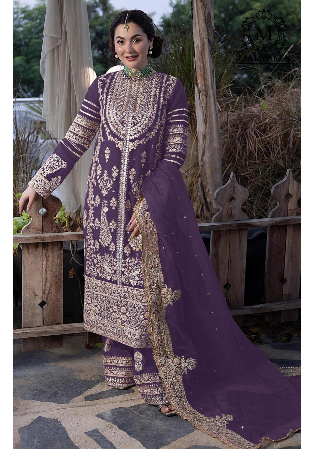 Buy Sublime Georgette Purple Straight Cut Salwar Kameez online.