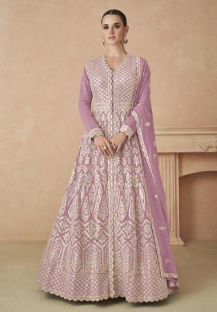 Buy Sublime Georgette Rosy Brown Anarkali Salwar Kameez online.