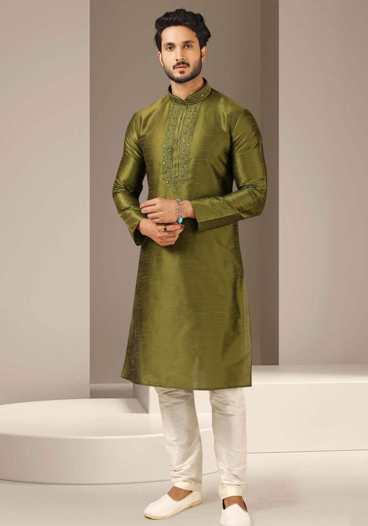 • Sublime Silk Dark Olive Green Kurtas