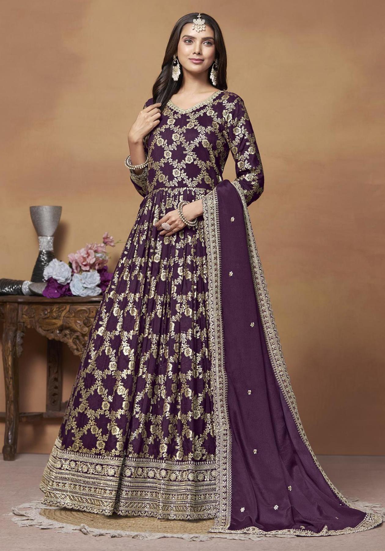 Buy Superb Chiffon Brown Anarkali Salwar Kameez online.
