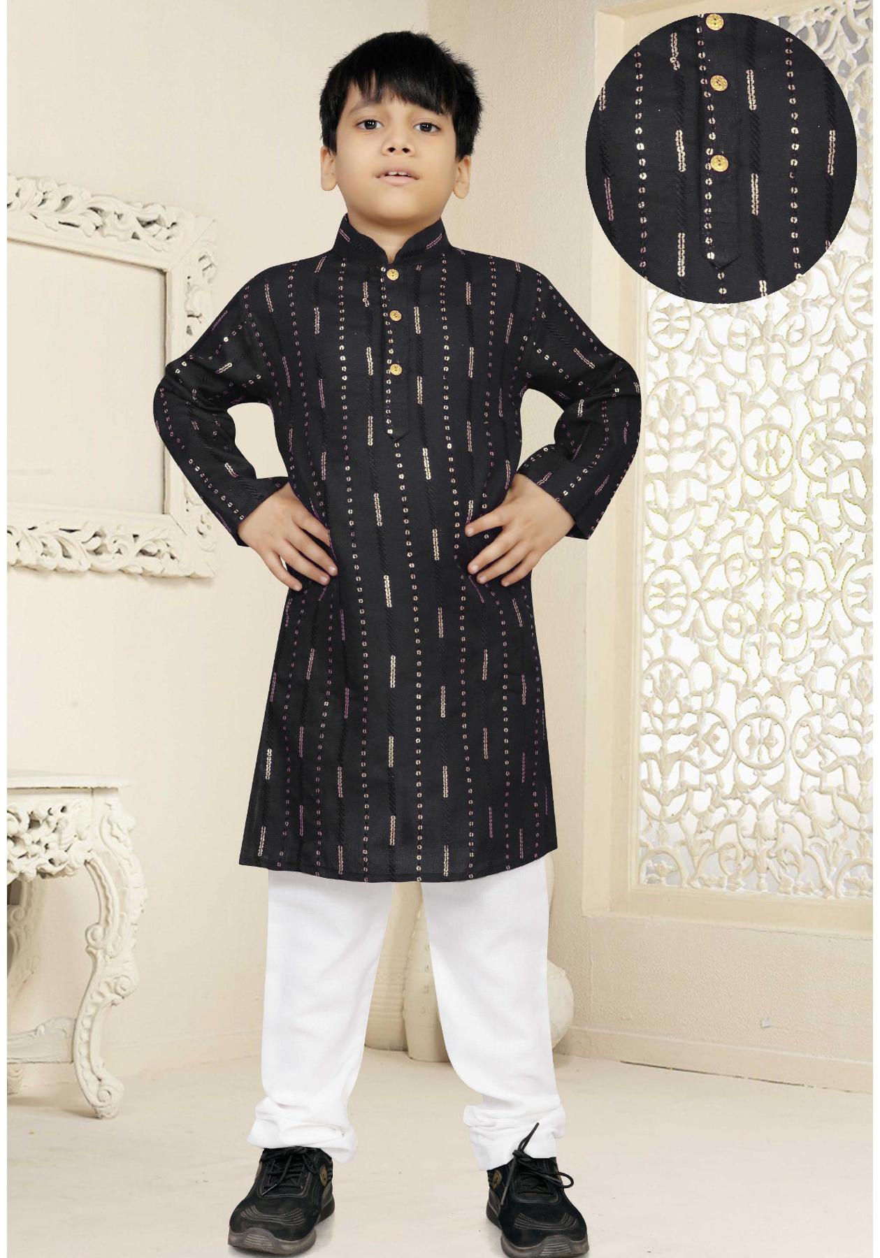 Buy Superb Cotton Black Kids Kurta Pyjama online.