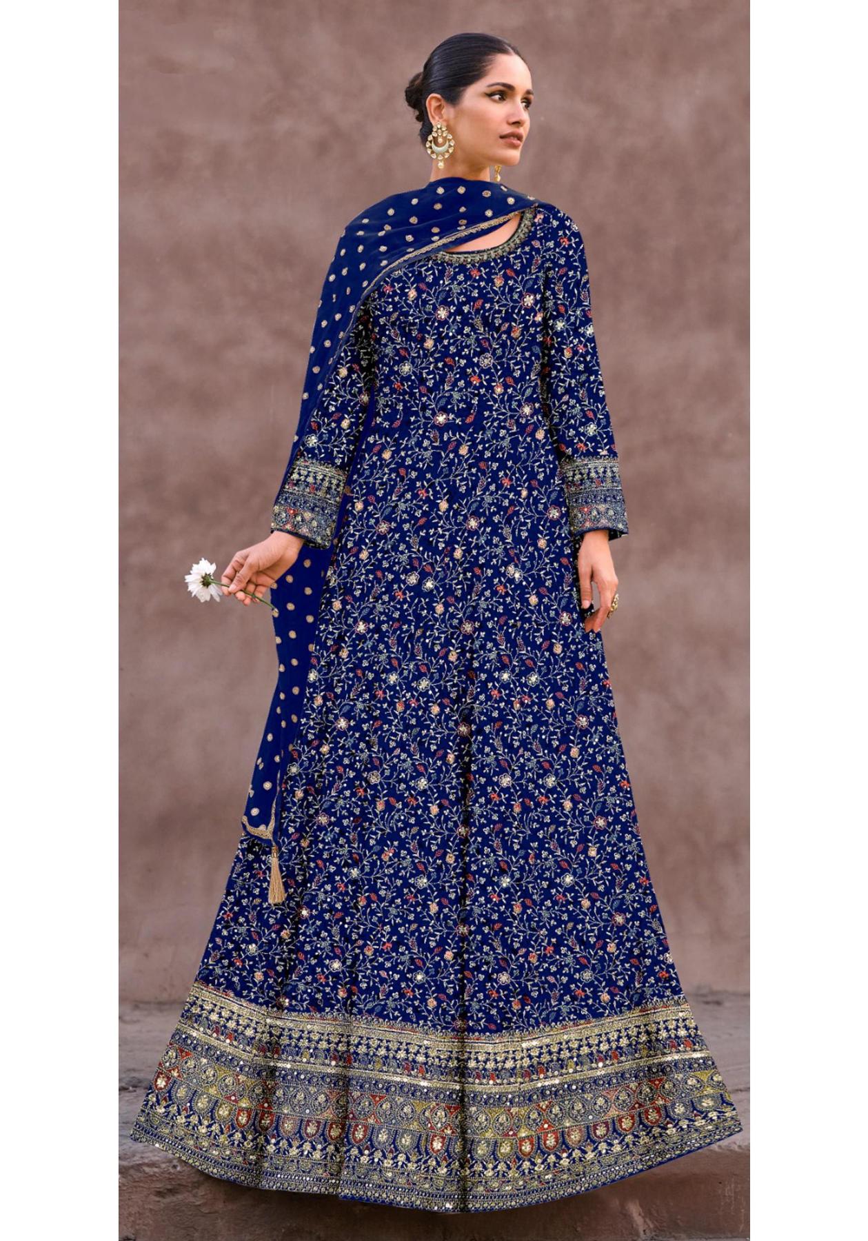 Buy Superb Georgette Navy Blue Anarkali Salwar Kameez online.