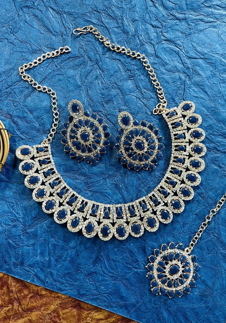 Details: 1 Necklace Set, 2 Earrings, 1 Mang Tikka.