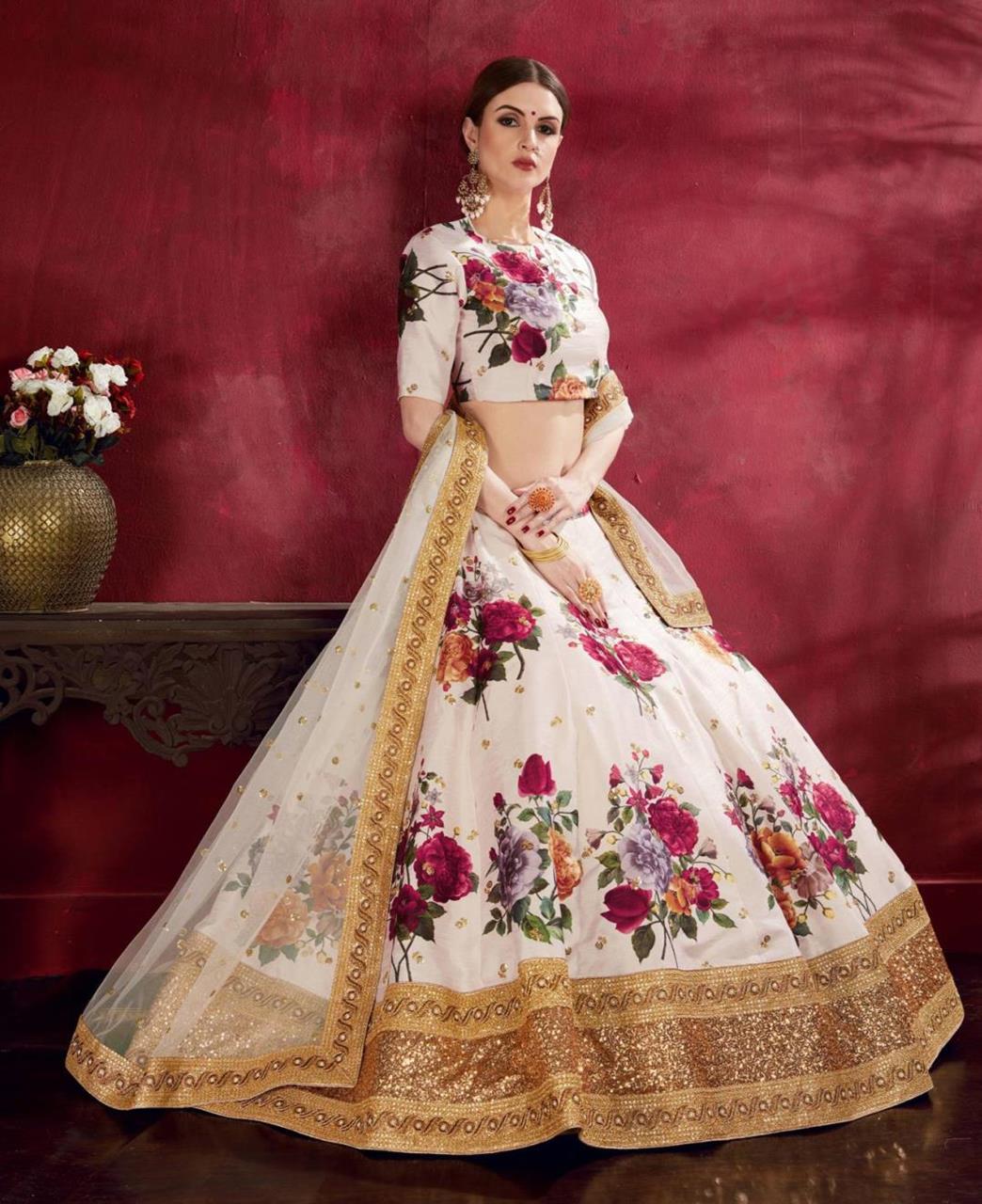 Lehenga Choli is Designed with Floral Print, Dori, Zari AND Sequins Embroidery.