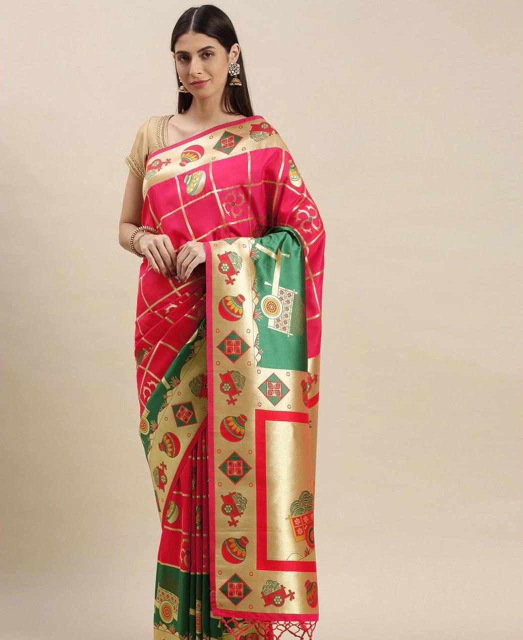 In Pre-stitched saree you will get the saree with stitched plates, belt on the waist and adjustable hooks. So you can wear the saree like a skirt