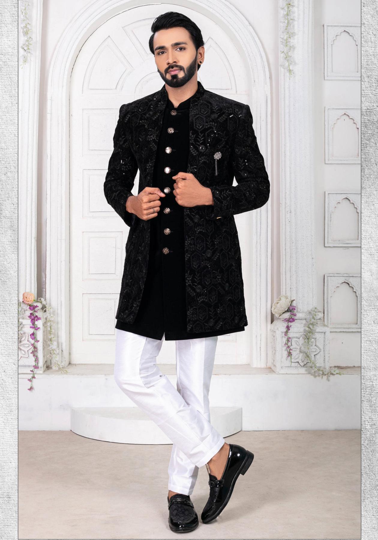 Picture of Superb Silk Black Indo Western Picture of Superb Silk Black Indo Western