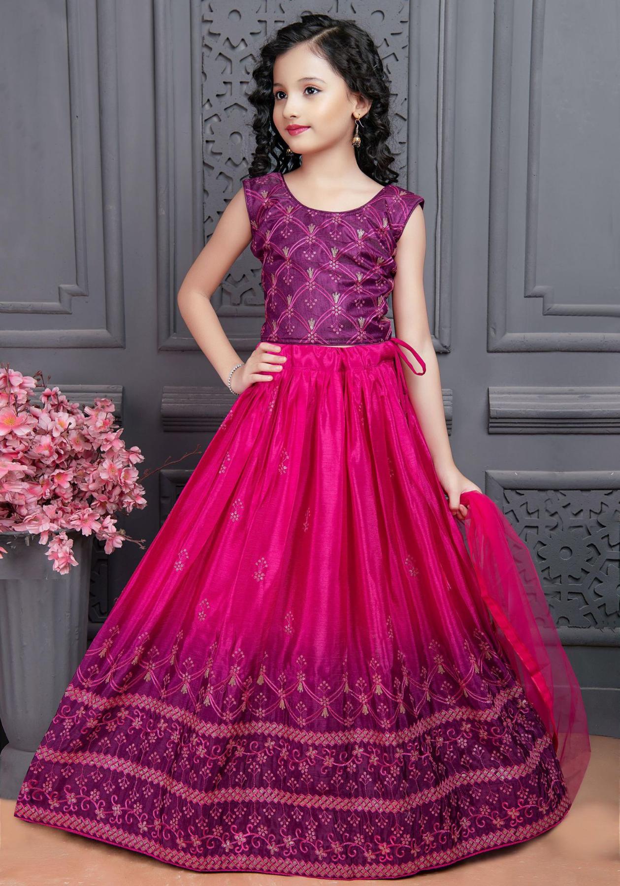 Buy Superb Silk Crimson Kids Lehenga Choli online.