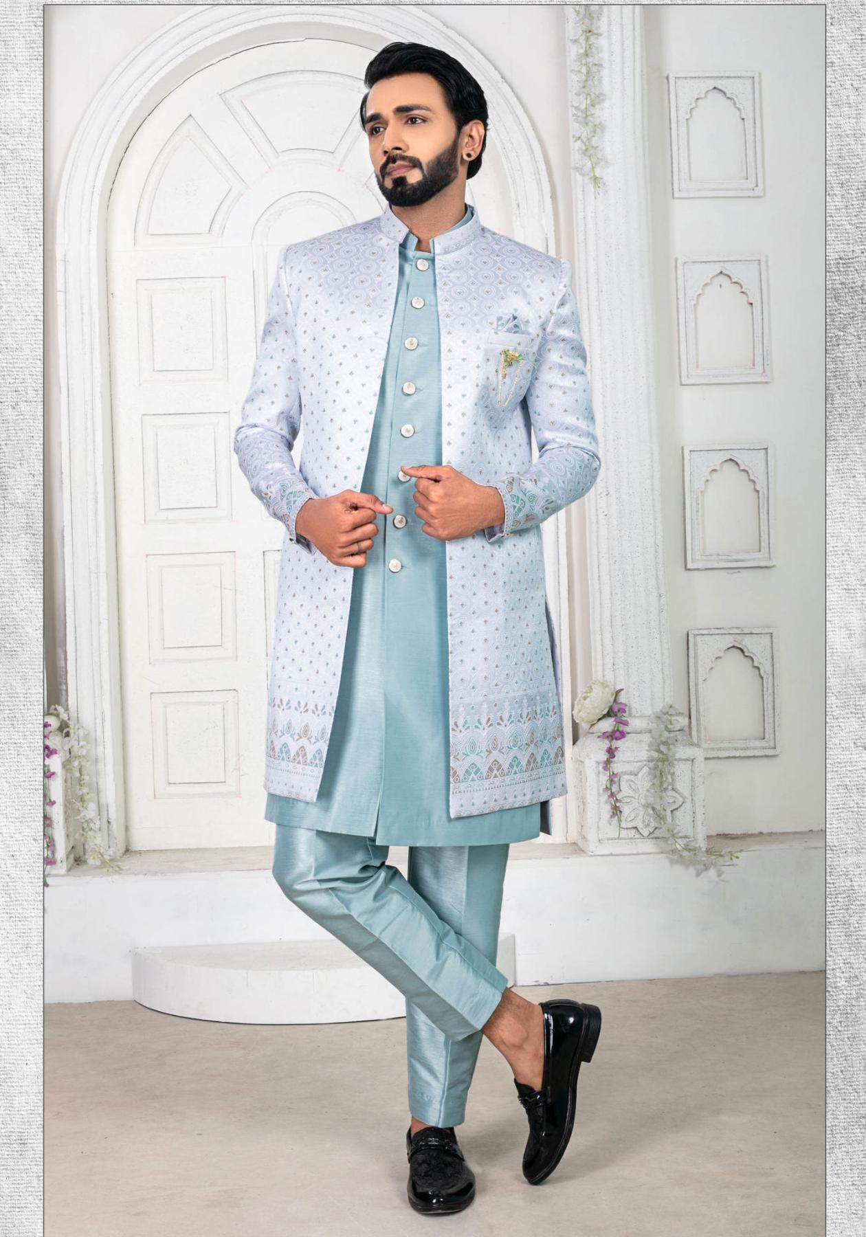 Buy Superb Silk Light Steel Blue Indo Western online.