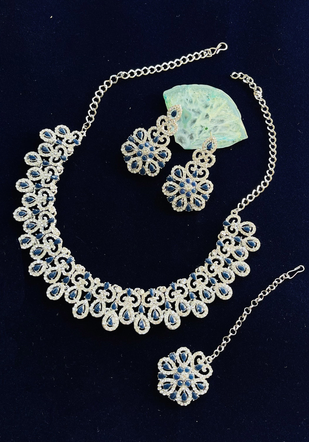 Details: 1 Necklace Set, 2 Earrings, 1 Mang Tikka.