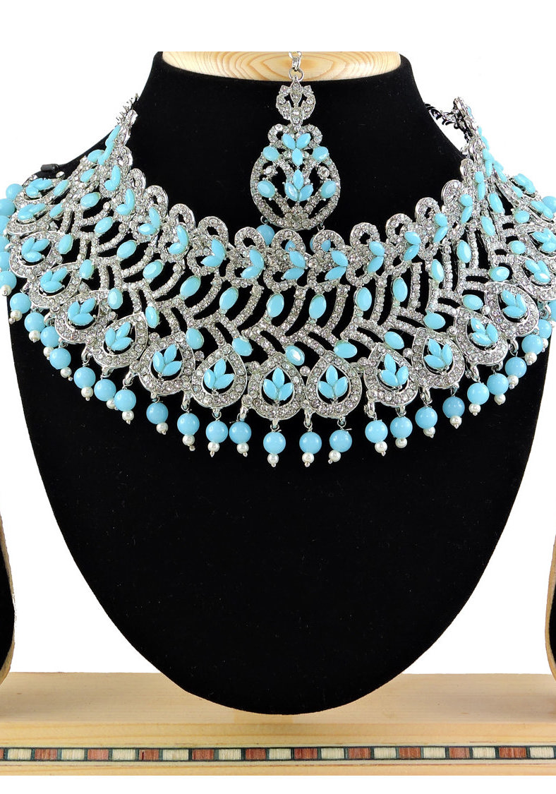 Buy Taking Cadet Blue Necklace Set online.