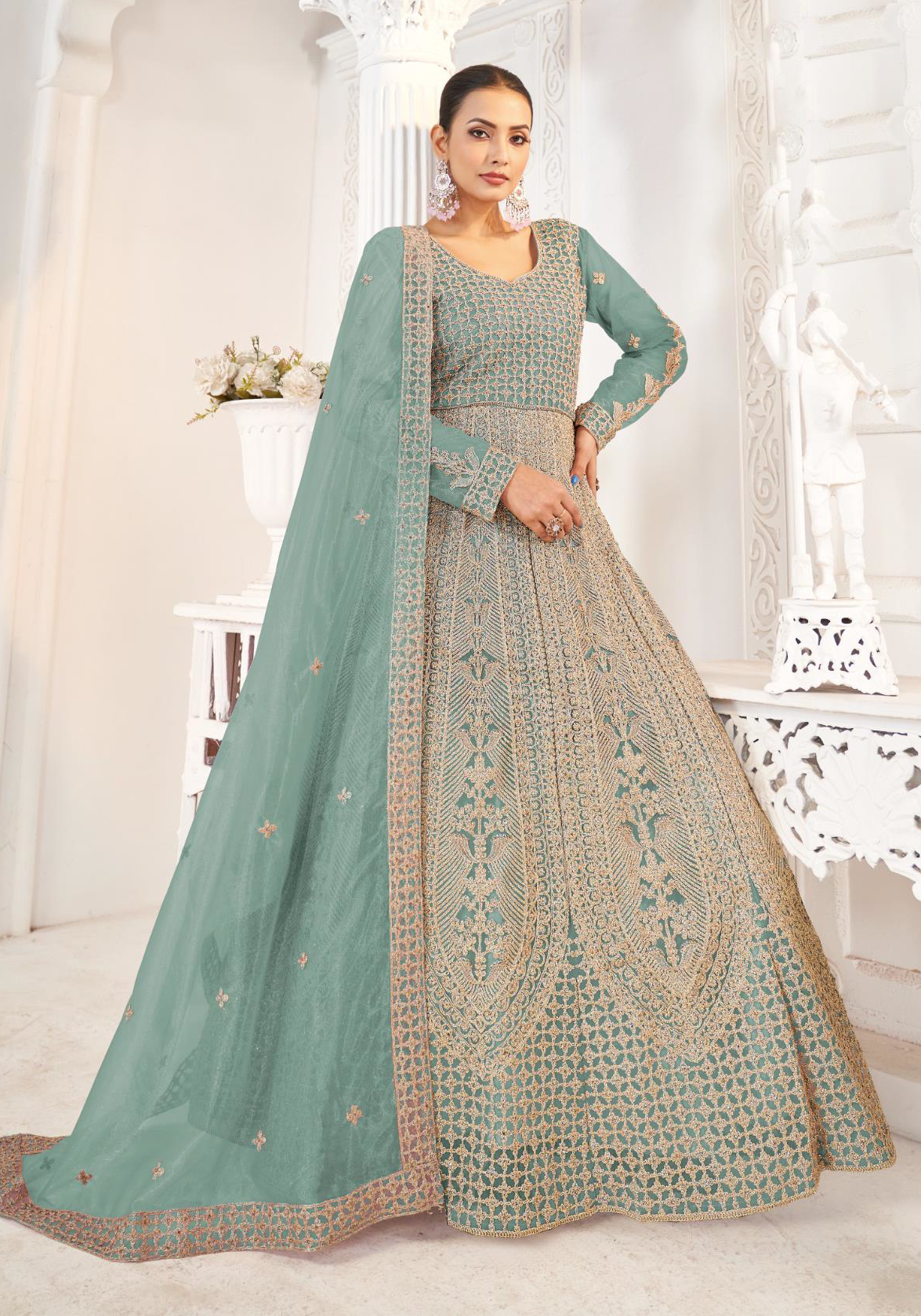 Buy Taking Net Powder Blue Party Wear Gown online.