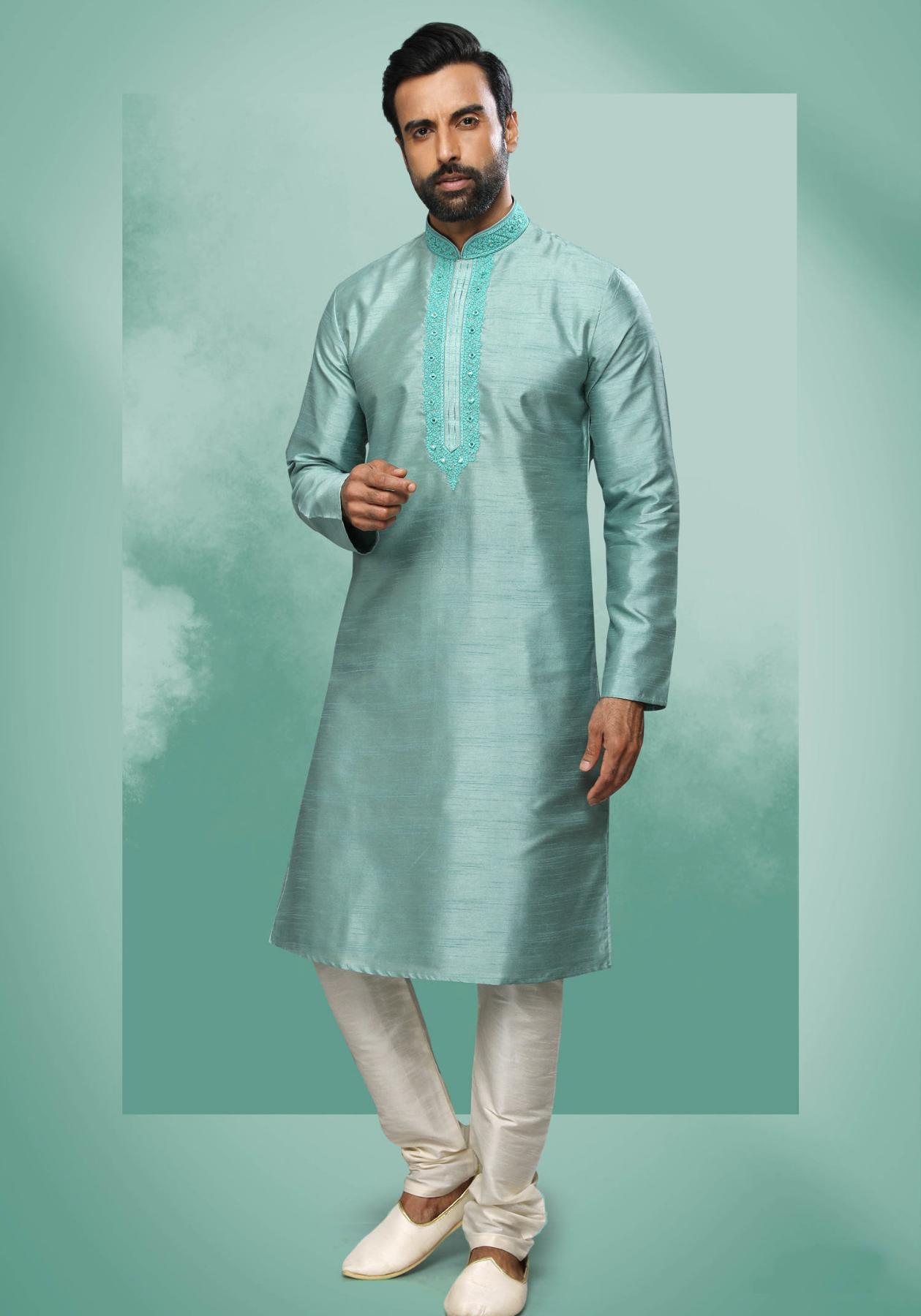Buy Taking Silk Dark Sea Green Kurtas online.