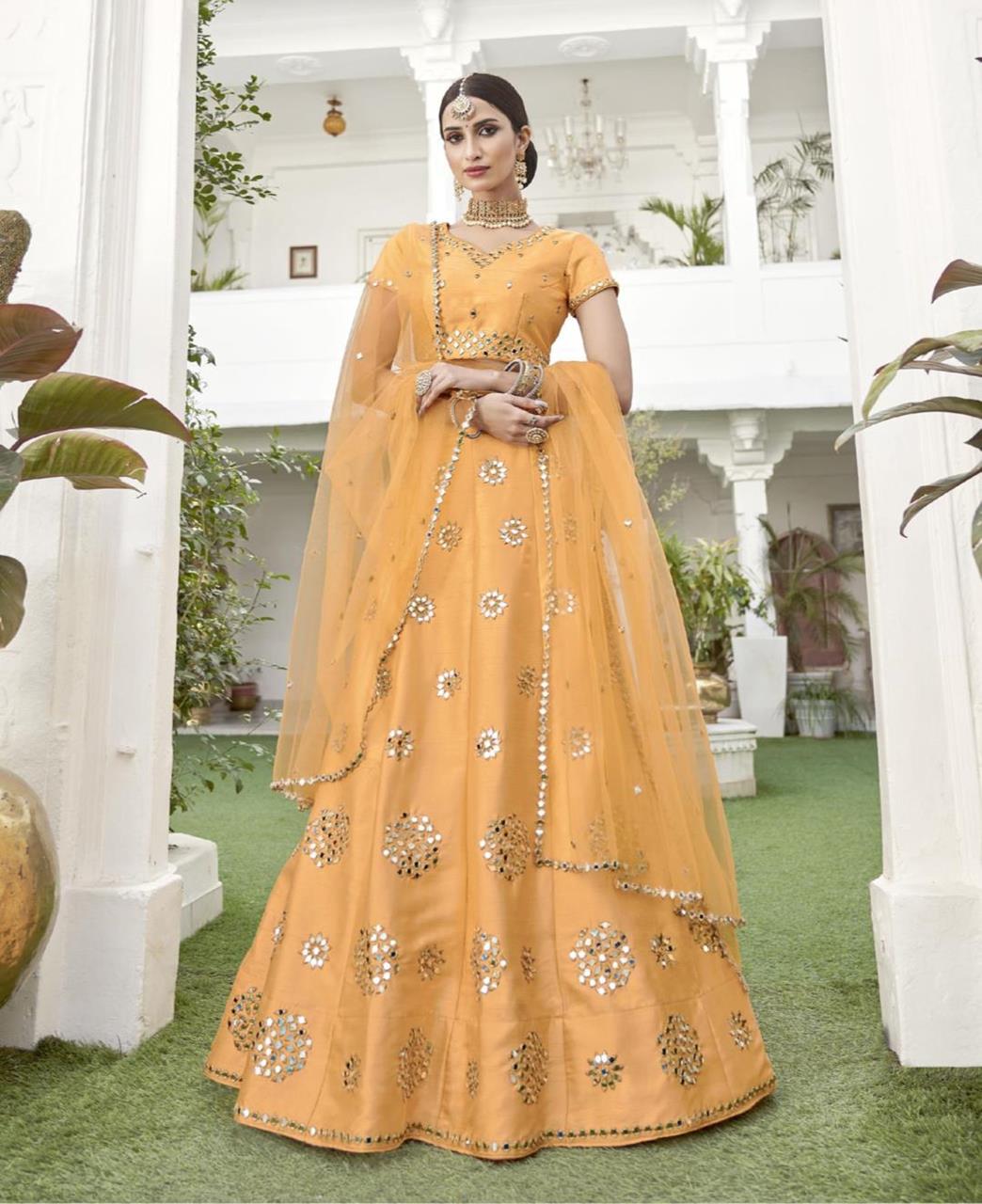 Lehenga Choli is Designed with Zari Embroidred & Hand Embroidred Real Mirror Work With Zarkan Work.