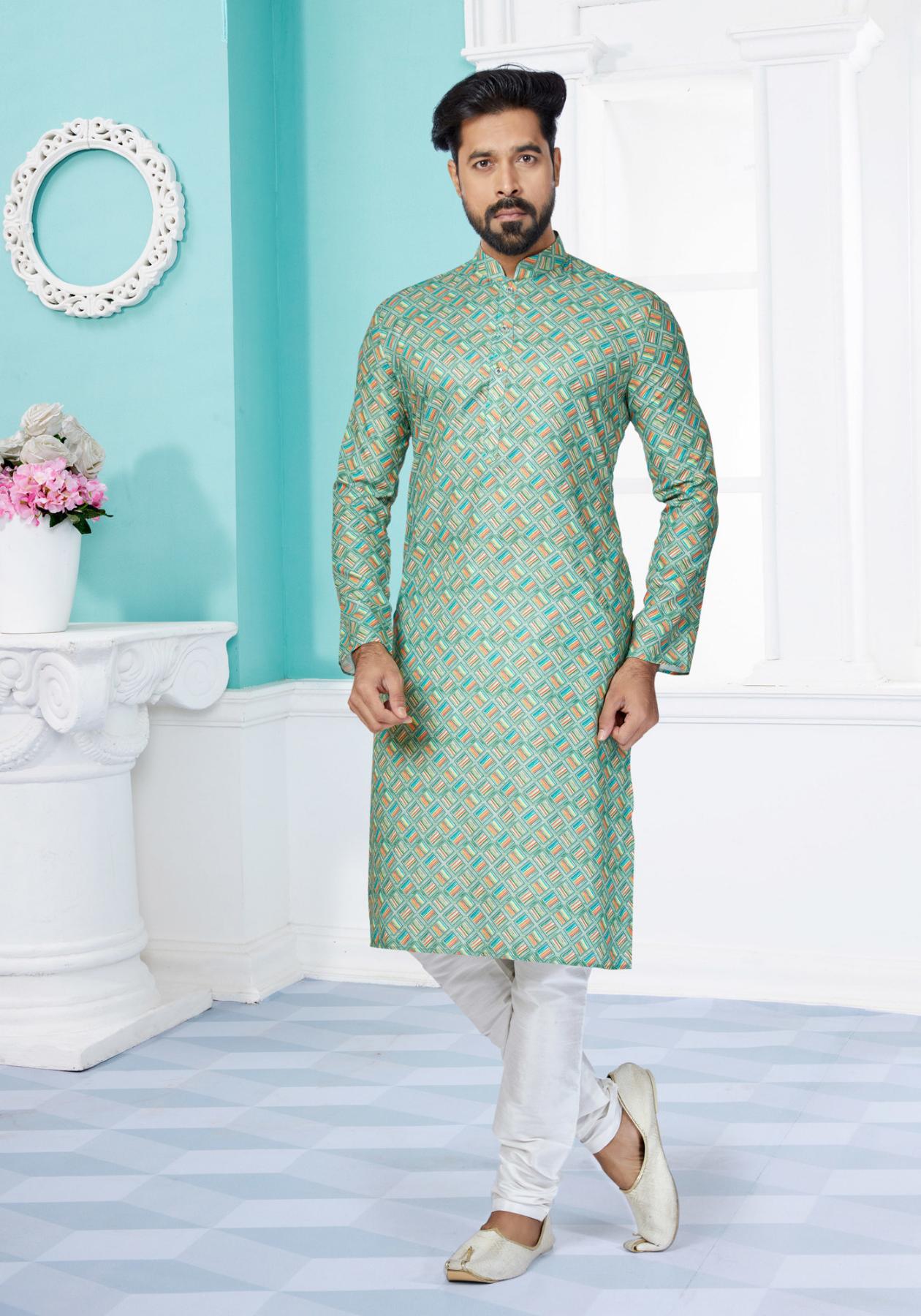 Picture of Well Formed Cotton Dark Sea Green Kurtas