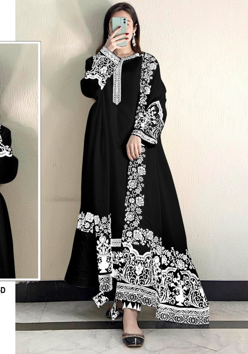 Buy Well Formed Georgette Black Anarkali Salwar Kameez online.