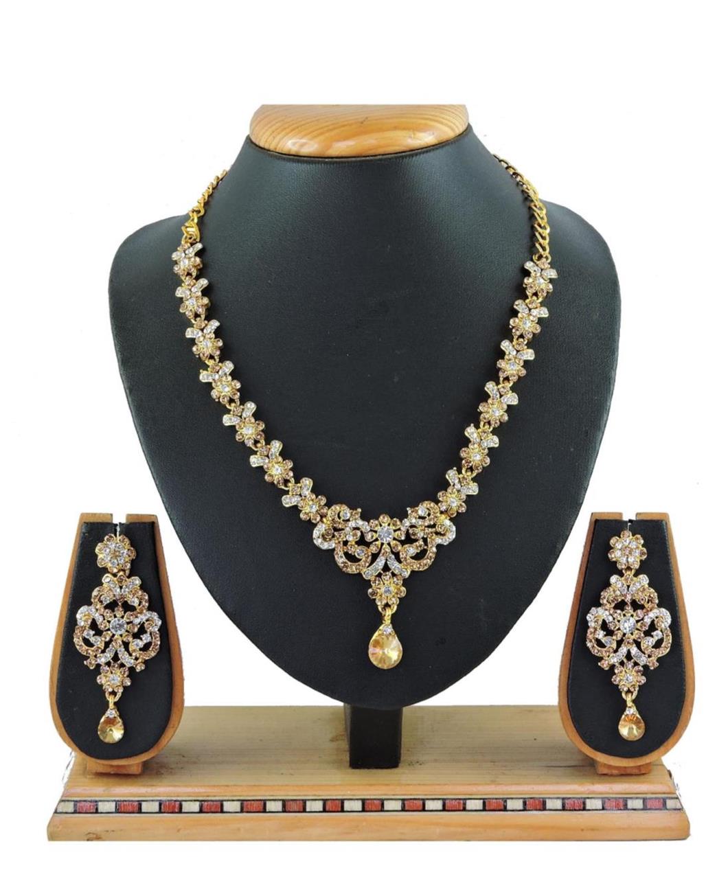Buy Well Formed Gold+White Necklace Set Jewellery Neckless For Women
