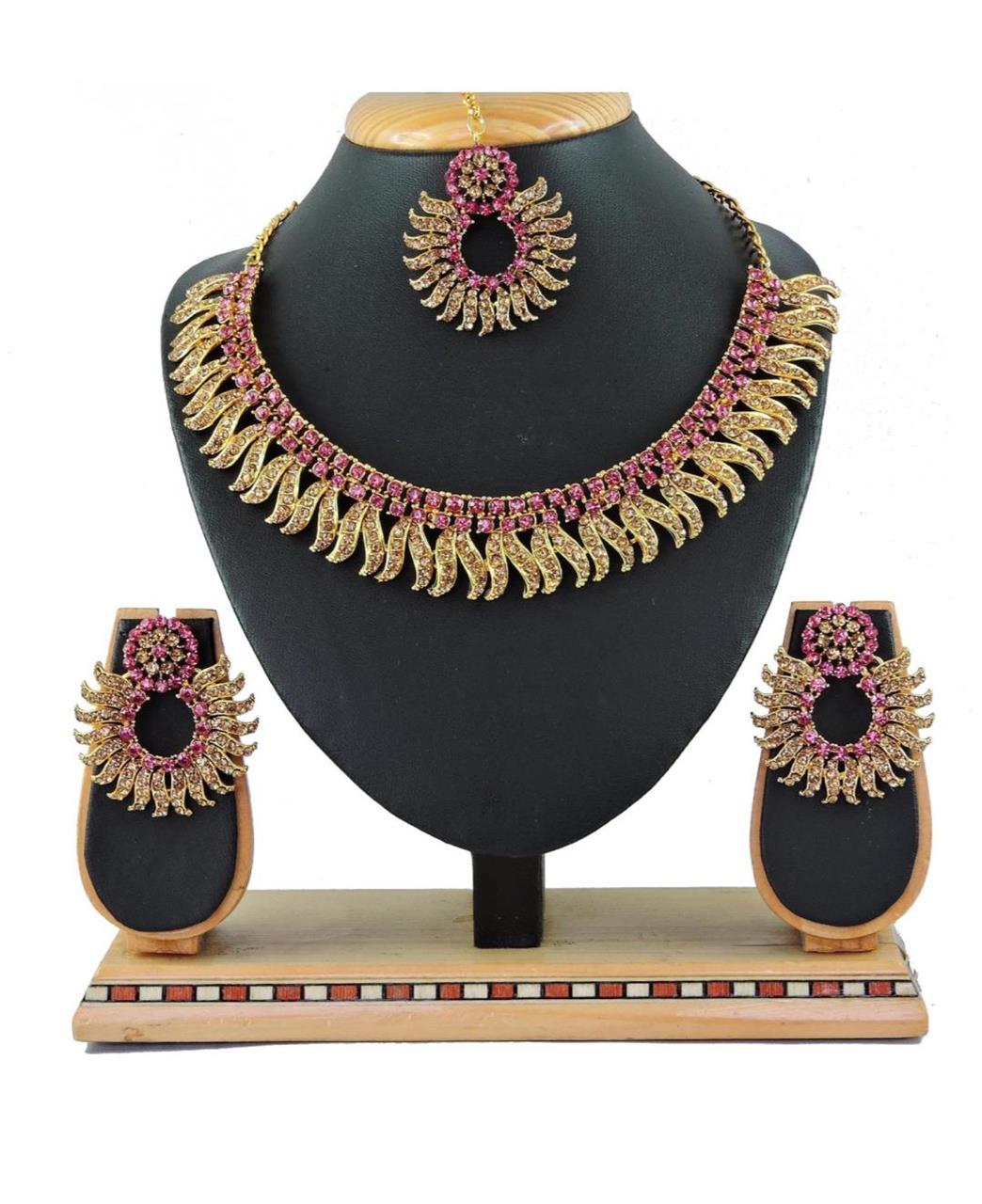 Buy Well Formed Pink Necklace Set Jewellery Neckless For Women