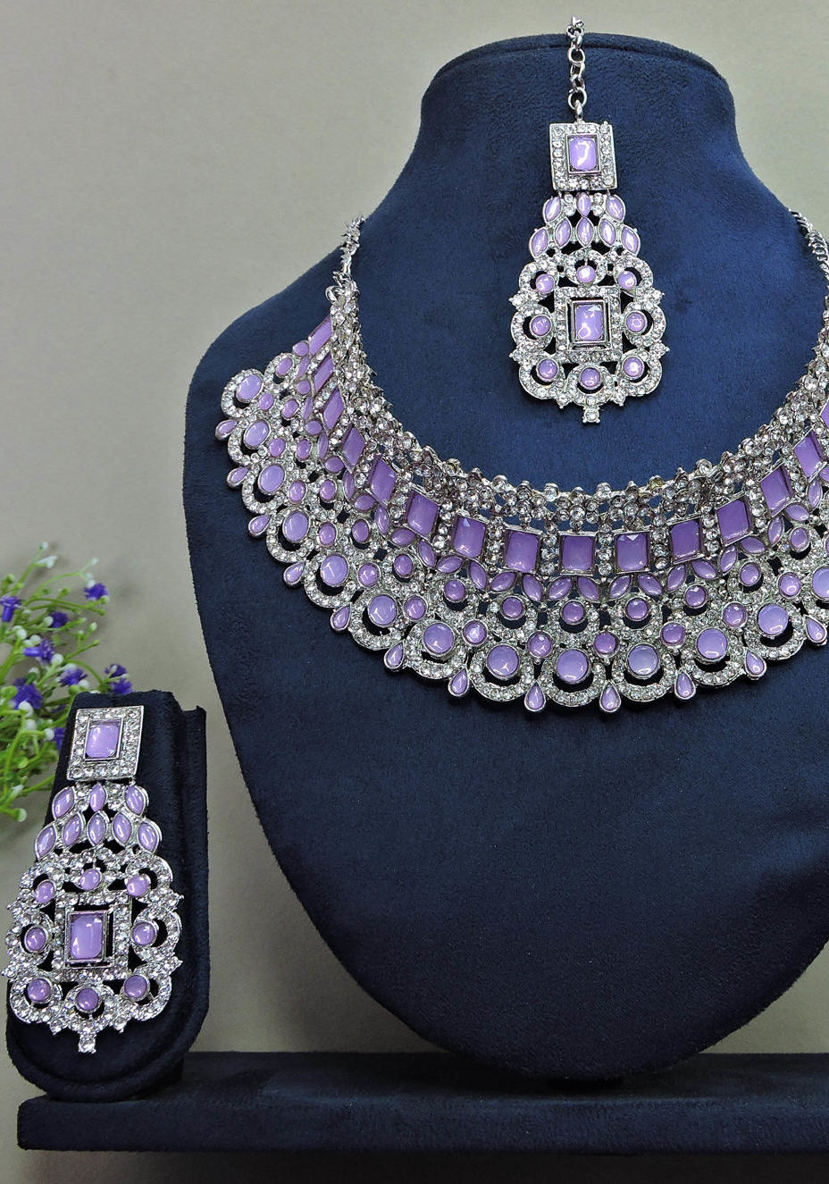Details: 1 Necklace, 1 Pair Earrings, 1 Mang Tikka.
