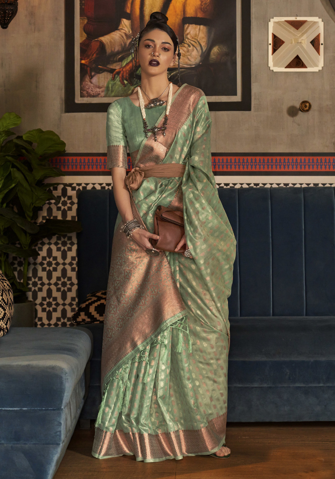 Beautifully Designed with Copper Silver & Gold Zari Base Handloom Weaving Work Work.