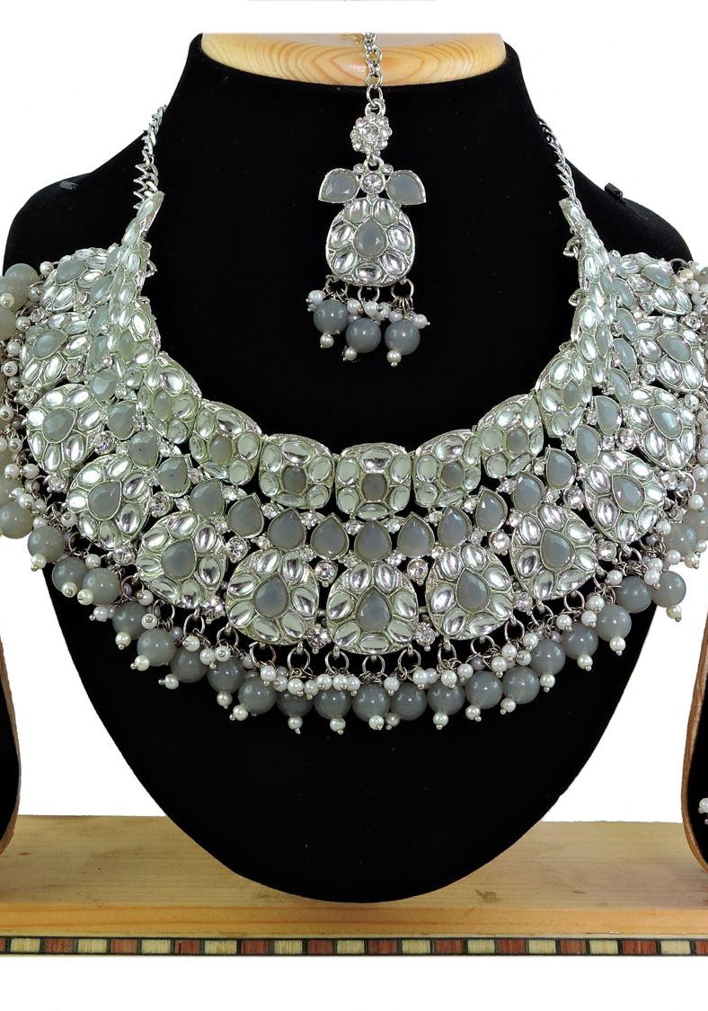 Buy Well Formed Slate Grey Necklace Set online.