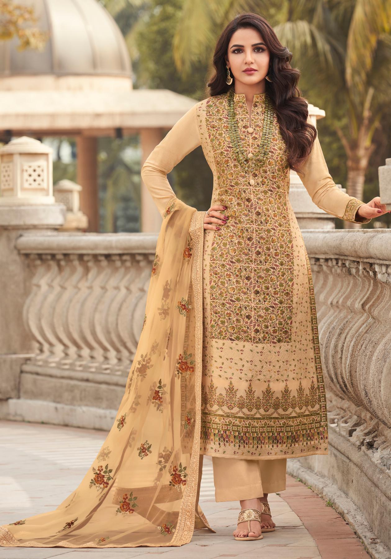 Normally size is measured between the underarm stitching lines from the stressed kameez.