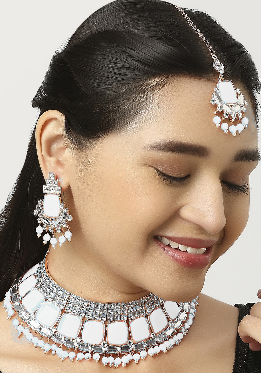 Buy Well Formed White Necklace Set online.