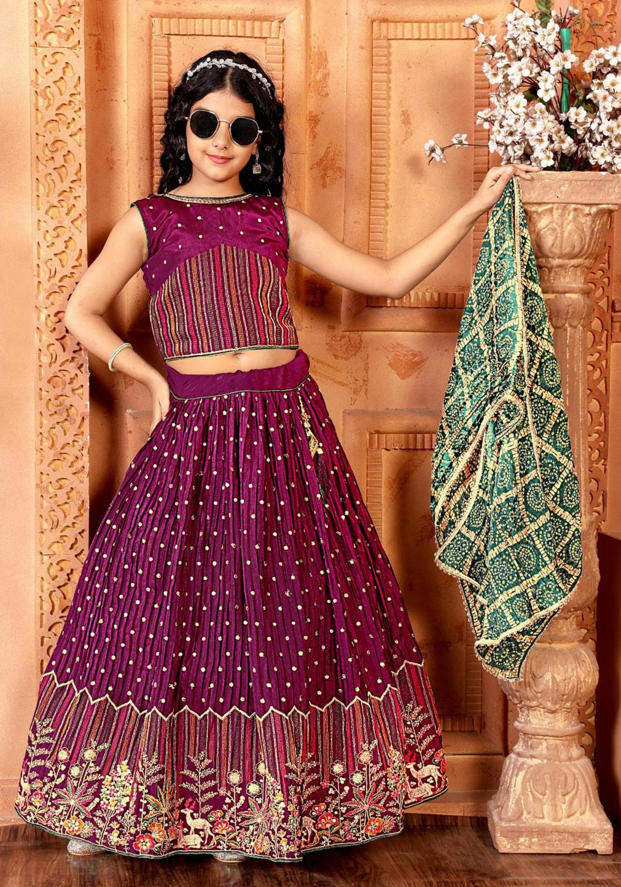 Buy Wonderful Chiffon Purple Kids Lehenga Choli online.