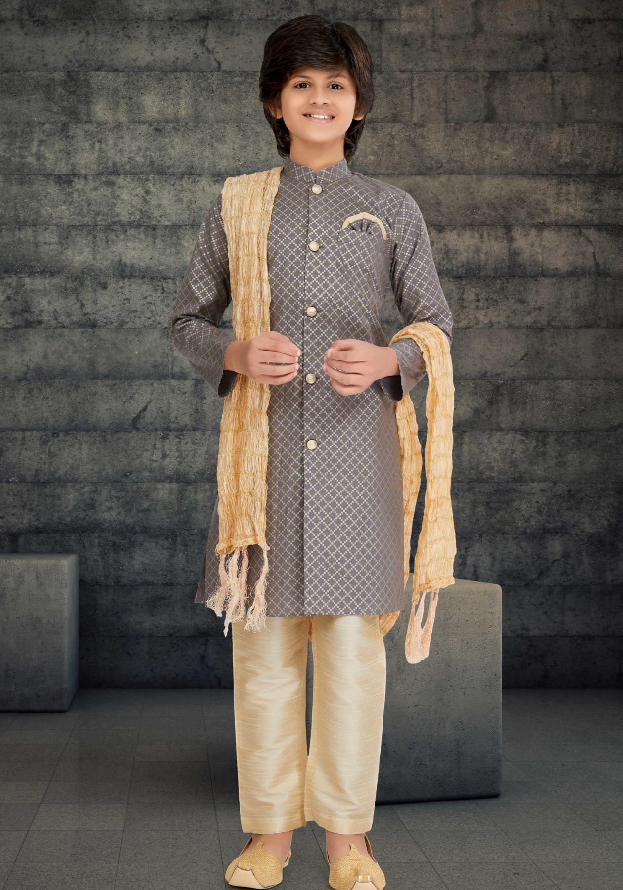 Wonderful Cotton Grey Kids Kurta Pyjama
