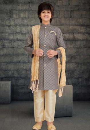 Picture of Wonderful Cotton Grey Kids Kurta Pyjama Picture of Wonderful Cotton Grey Kids Kurta Pyjama