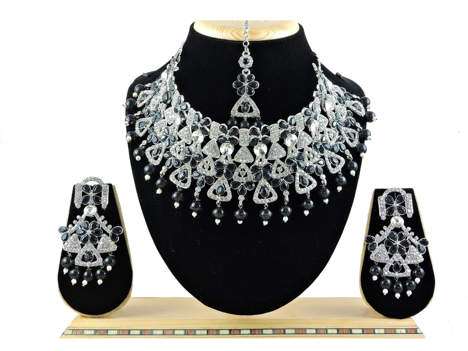 Buy Wonderful Dark Sea Green Necklace Set online.