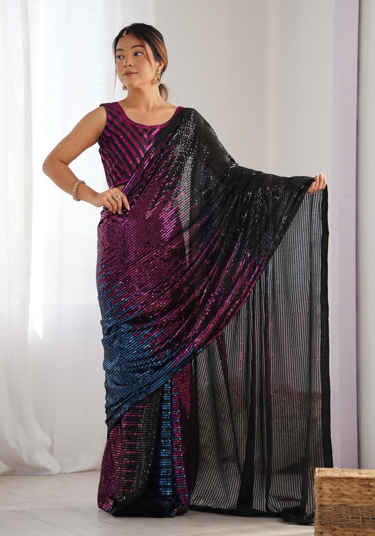 In Pre-stitched saree you will get the saree with stitched plates, belt on the waist and adjustable hooks. So you can wear the saree like a skirt