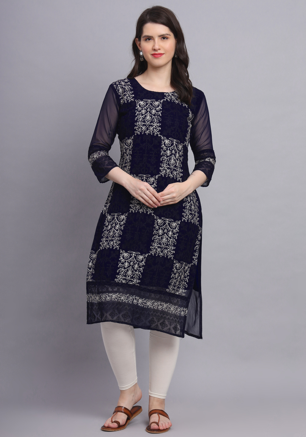 Buy Wonderful Georgette Midnight Blue Kurtis & Tunic online.
