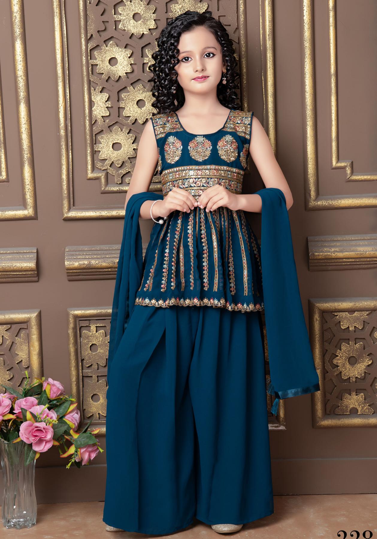 Buy Wonderful Georgette Navy Blue Kids Salwar Kameez online.
