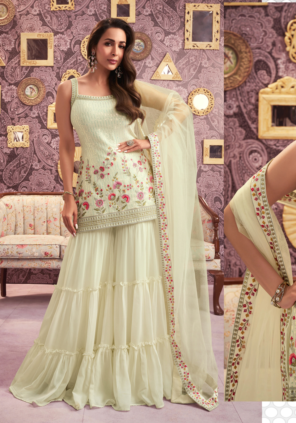Buy Wonderful Georgette Tan Straight Cut Salwar Kameez online.
