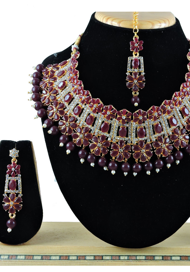 Picture of Wonderful Maroon Necklace Set Picture of Wonderful Maroon Necklace Set