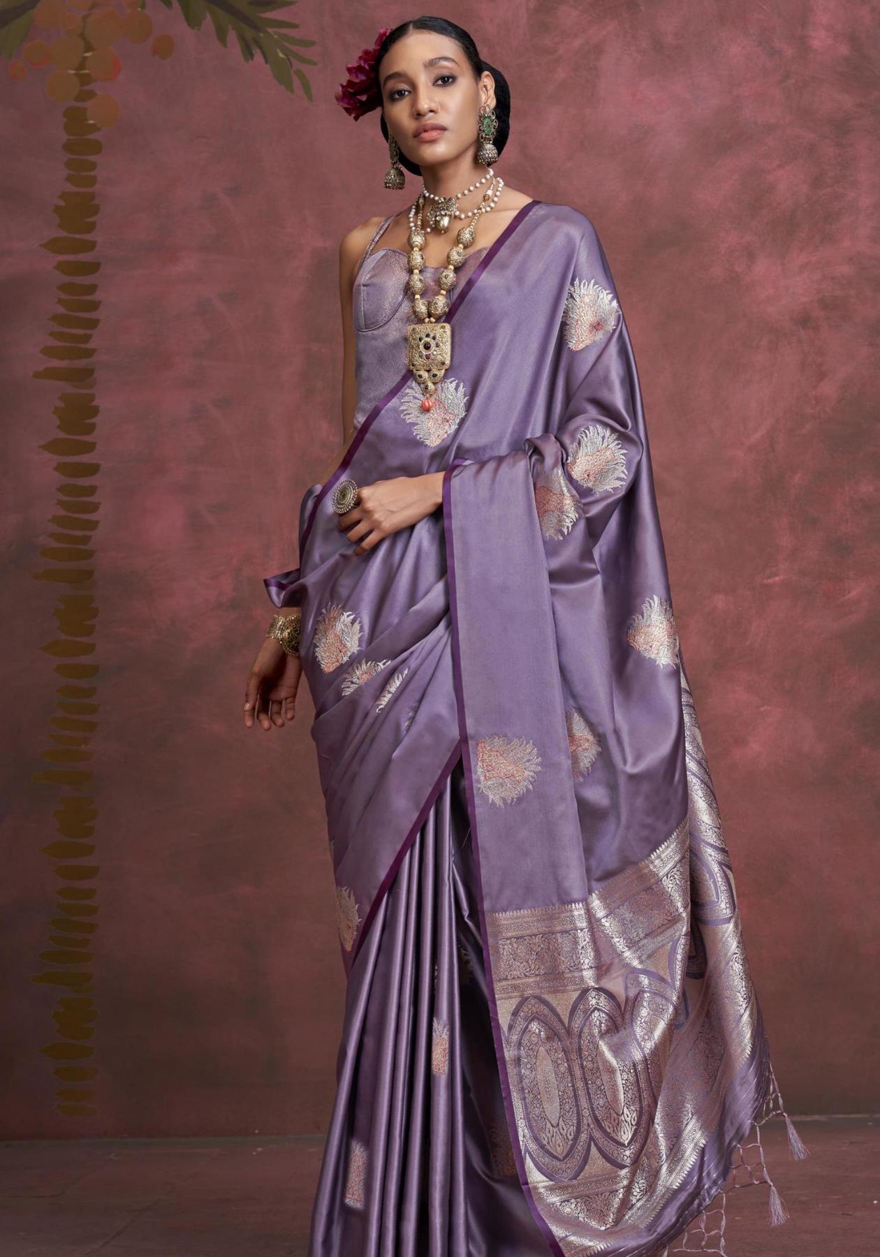 Buy Wonderful Satin & Silk Light Slate Grey Saree online.
